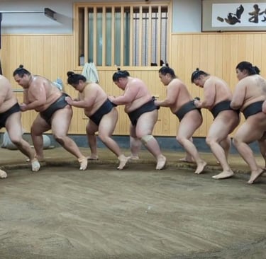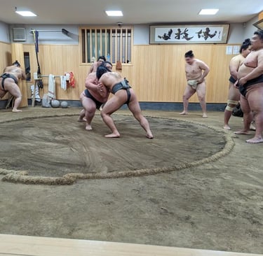 I arrived in Sumida City and was immediately struck by the contrast. Zushi's laid-back beach vibe was replaced by the bustling energy of Tokyo. Skyscrapers reached for the heavens, and people from all walks of life scurried about, each engrossed in their own world. But amidst this modernity, I was here to experience something ancient and deeply rooted in Japanese culture. One of the lesser-known facts about Sumo is its ancient origins as an agricultural ritual. Dating back over 2,000 years, Sumo was initially a form of religious practice aimed at praying for a bountiful harvest. Wrestlers would perform in front of shrines, and the outcome of the match was believed to predict the success of the year's crop. This historical context adds a layer of depth to Sumo, elevating it from mere sport to a ritualistic tradition. I walked to the Sumo training facility, my heart pounding with excitement. As I entered, a wave of heat and the earthy smell of sweat hit me. The atmosphere was electric.
